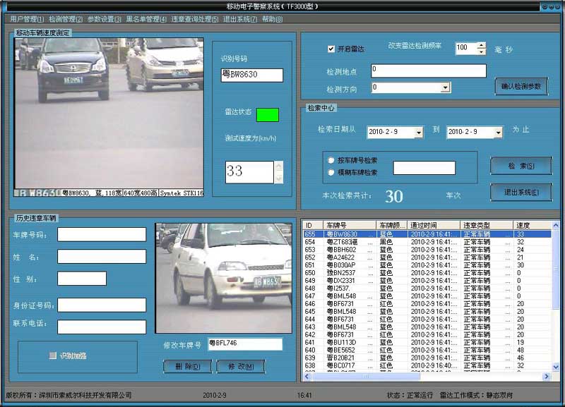系統能夠自動實時的將現場識別出來的車牌號碼與系統數據庫中記錄的黑名單車牌數據進行比對,可識別出各種備案車輛(如“被盜車輛”、“肇事逃逸車輛”“違章欠費車輛”等),同時具備報警功能。